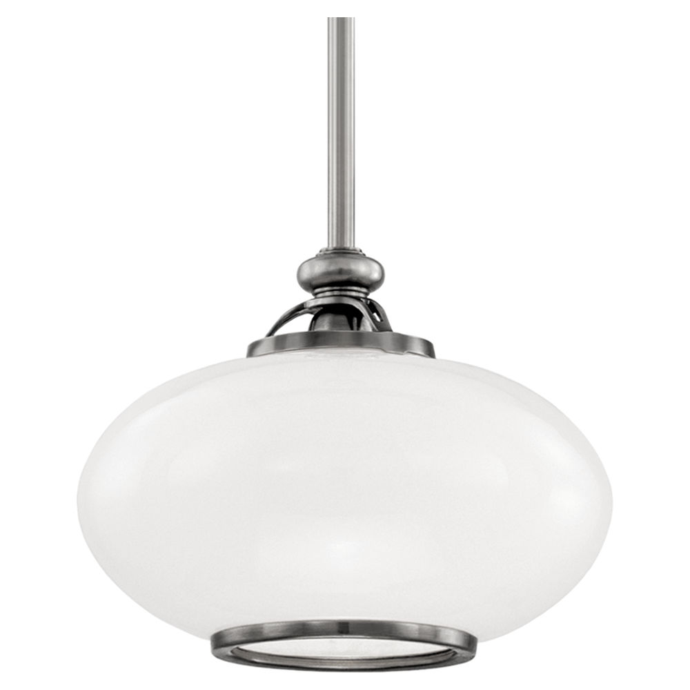 Model 9812 (1) light Pendant by Hudson Valley Lighting is 13.5 inches in height. With a Chic Vintage & Industrial style it belongs to the Canton Collection. It has (1) 150 watt a19 medium base socket. The bulb is not included. This item is Imported and ships by Ups.