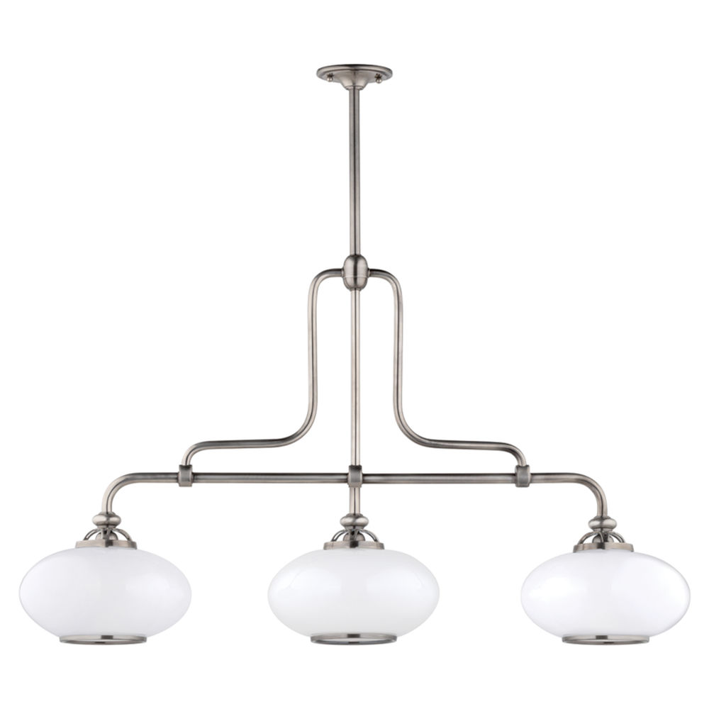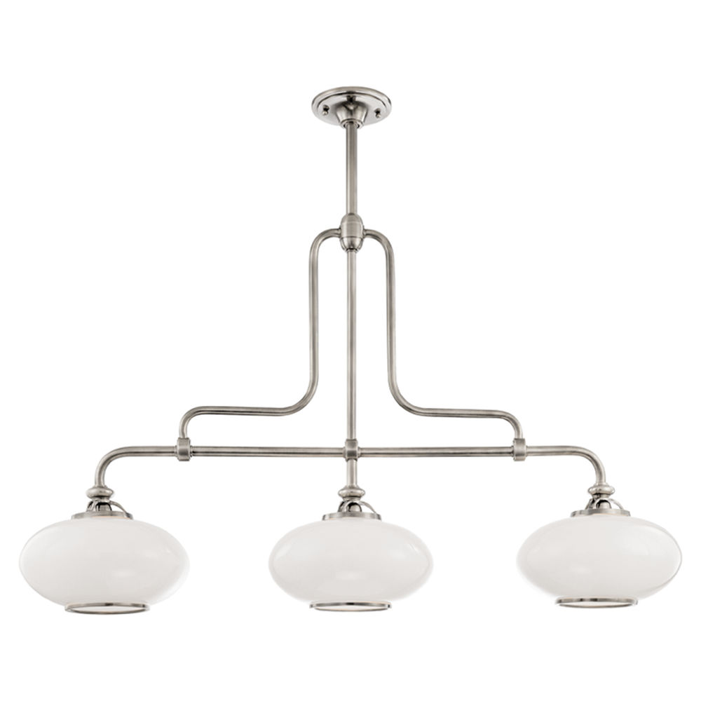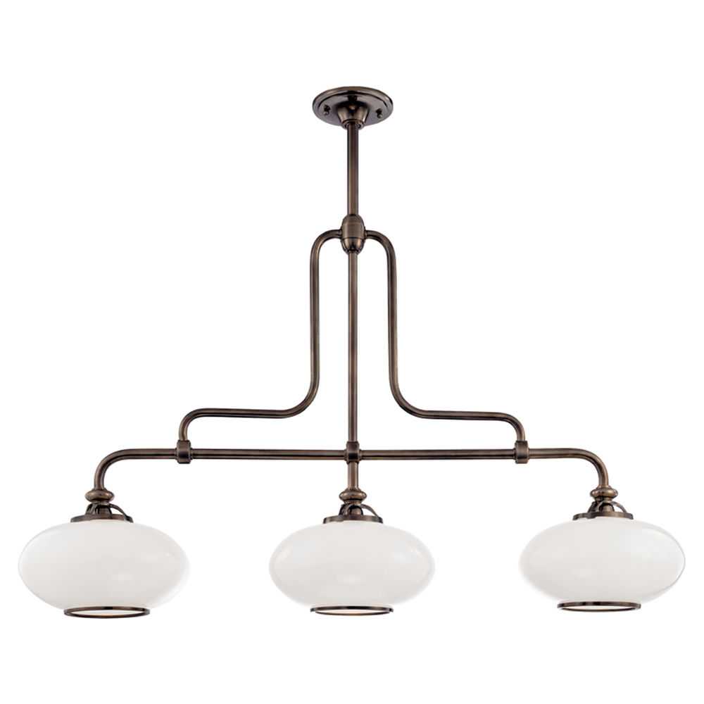 Model 9813 (3) light island fixture by Hudson Valley Lighting is 32 inches in height. With a Chic Vintage & Industrial style it belongs to the Canton Collection. It has (3) 150 watt a19 medium base sockets. The bulb is not included. This item is Imported and ships by Truck Only.