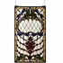 Midnight Blue dragonflies dance on an Iridized Clear glass field with Cabernet Trilliums and glittering Gold borders in this Meyda Tiffany original stained glass window. Brass mounting bracket and chains are included.