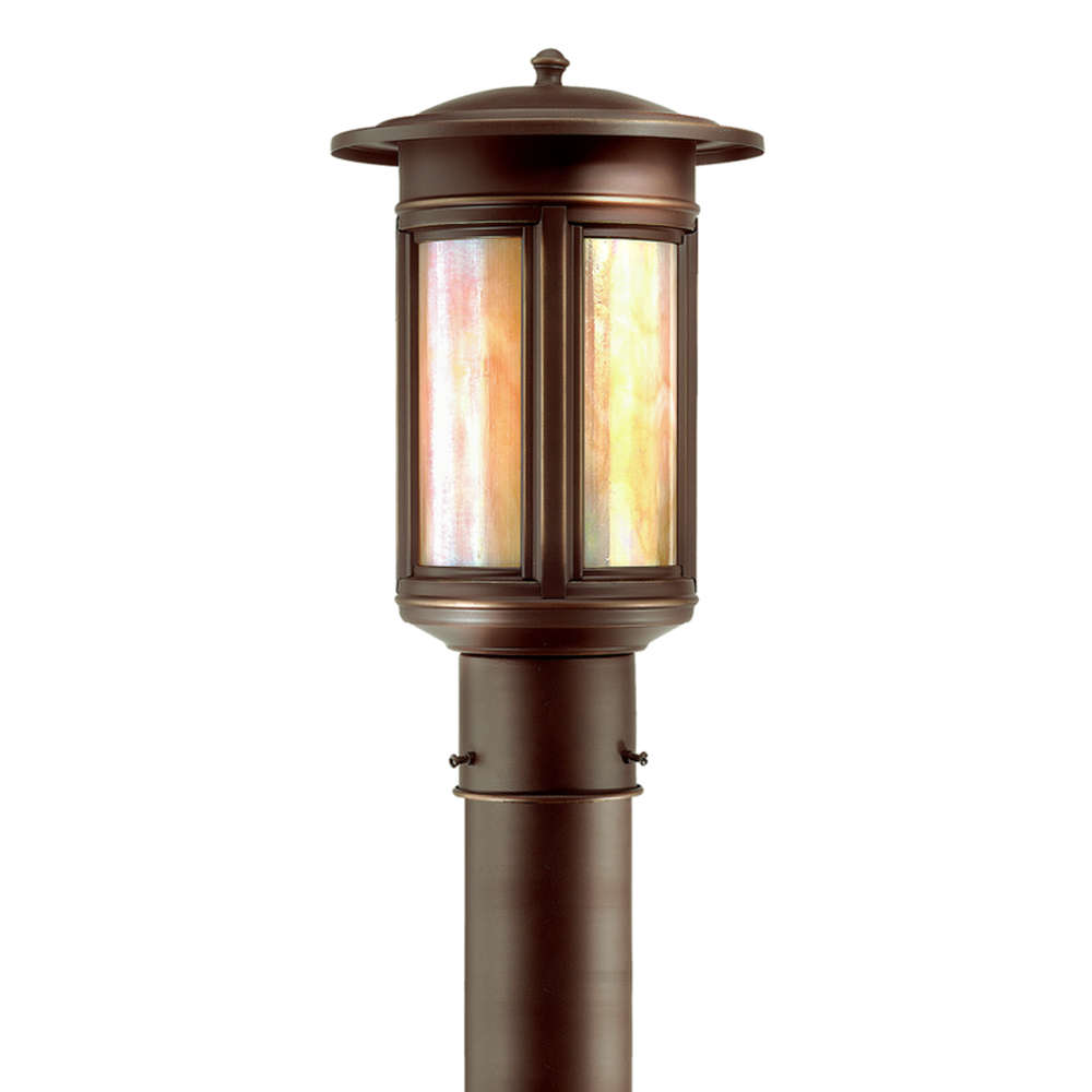 The PIH6911OB Post Lantern is manufactured by Troy Lighting and belongs to the Highland Park Collection and comes with the Oil Rubbed Bronze finish and is made of brass. The PIH6911OB is imported. Measuring 8W x 14.5H it has Iridescent Honey glassware.