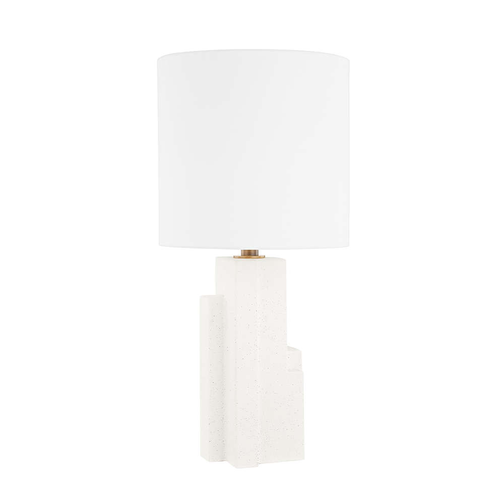 Reminiscent of a city skyline, Leland is a series of rectangular shapes of varying heights stretching towards a white linen drum shade. The White Concrete base allows for individual air pockets to come through giving this table lamp a unique natural feel. The all-white base and shade adds to the fixture's overall clean, polished look.