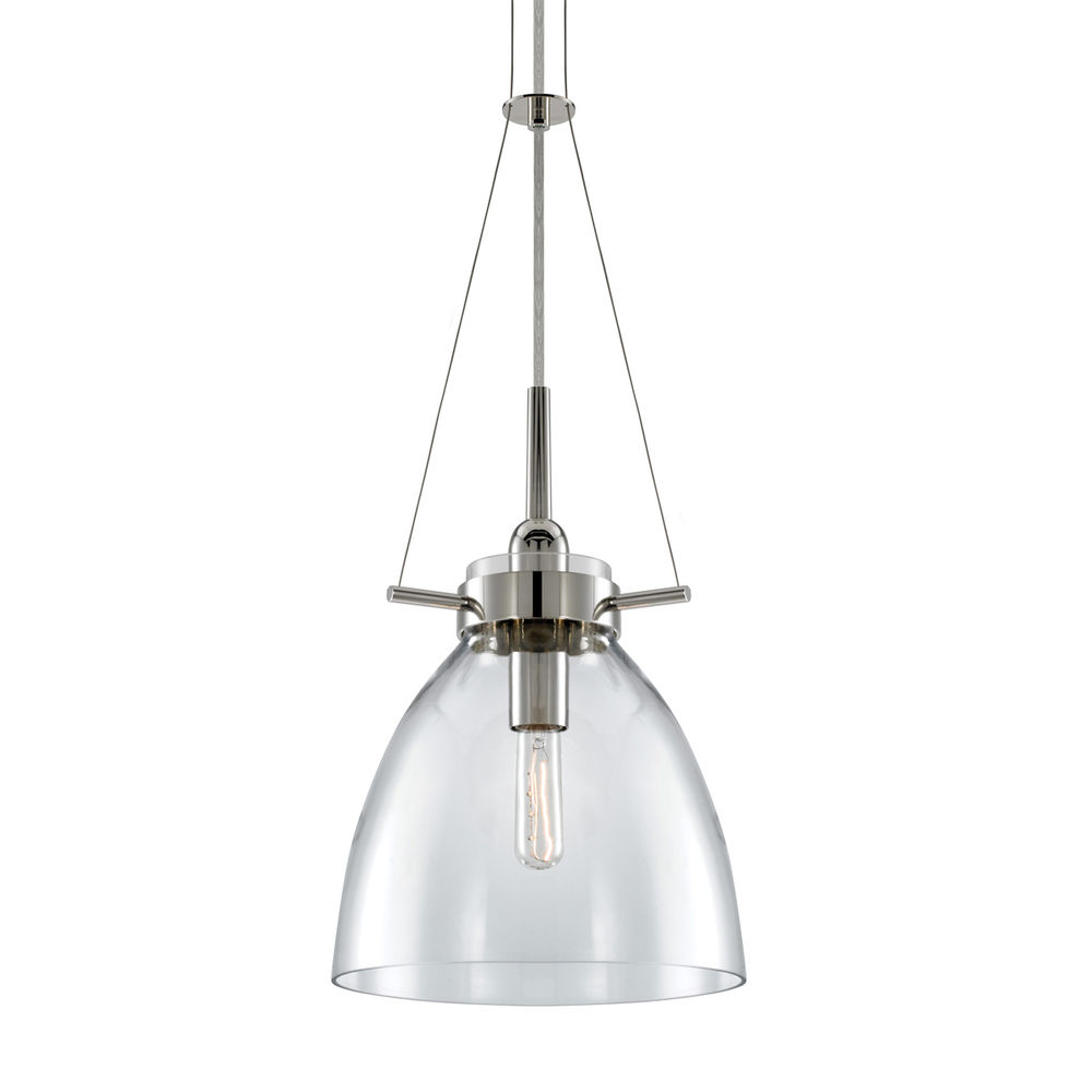 The Transitional sn3294-35C 120v Pendant from the Sonneman Castelli Collection uses a T10 Medium Base bulb and has a Polished Nickel finish and Clear Glass shade.