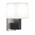 The Modern Origins sn3517-28 120v Wall Sconce from the Sonneman Otto Collection uses a E12 Candelabra Base bulb and has a Blackened Steel finish and White Linen shade.
