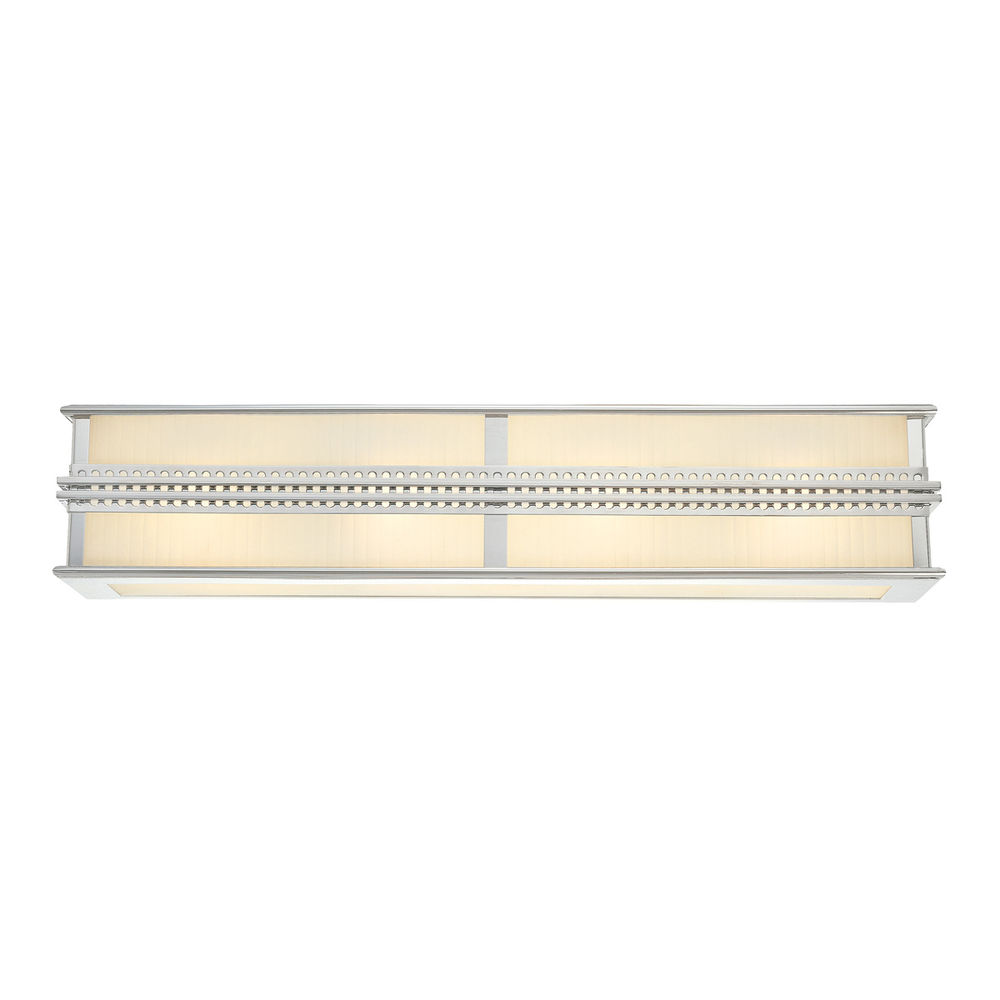 The Art Moderne, Art Deco sn4886-35 120v Bath Bar from the Sonneman Shanghai Collection uses a A19 Medium Base bulb and has a Polished Nickel finish and White Etched Fluted Glass shade.