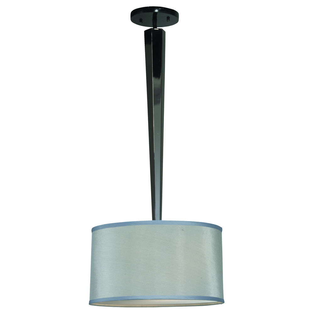 Black Nickel Plated, Steel Pendant W/ Black Granite Canopy, Drum Shade, Micro Mesh Aluminum Hardback Shade with Silver Trim and White Acrylic Diffuser/ Extensions available upon request.