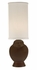 The 1141-ASL-2103 Ginger Collection Lamp Mini measures 16 inches in height, 5 inches in width or diameter and 5 inches in length or projection with a weight of 5 lbs. The candelabra base socket(s) will accept 60 watt bulb(s). This item is UL Listed for indoor use and will ship via UPS or FedEx ground. The finish description is as follows.... Ceramic, Mini-Lamp with Chocolate Brown Glaze Finish / White Silk-Blend, Cylinder Hardback Shade / Brushed Nickel Hardware