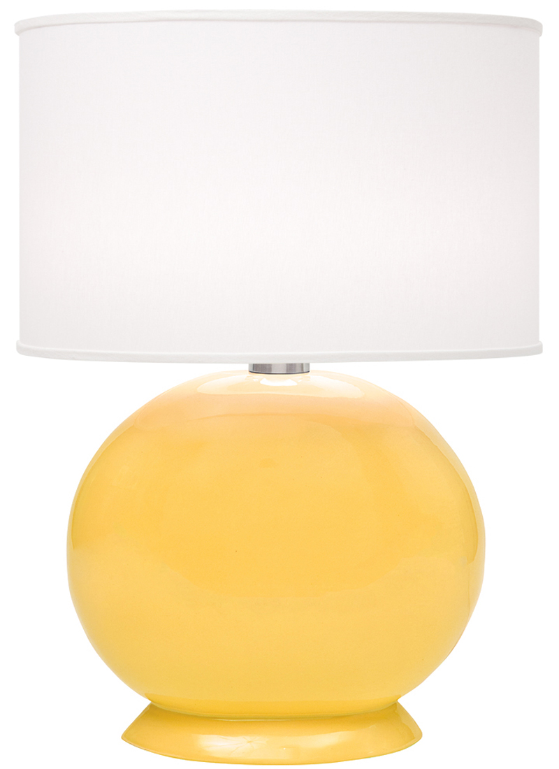 The 1159-ASL-2112 Cartman Collection Table Lamp measures 23 inches in height, 17 inches in width or diameter and 10 inches in length or projection with a weight of 14 lbs. The E26/ medium base socket(s) will accept 100 watt bulb(s). This item is UL Listed for indoor use and will ship via UPS or FedEx ground. The finish description is as follows.... Oval, Ceramic Table Lamp with Bright Yellow Glaze Finish / White Linen-Blend, Oval Hardback