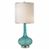 1281-ASL-2192 Thumprints Isabella Blown Glass Table Lamp in Translucent Turquoise / Polished Nickel with Off White Shantung Silk with Nickel Trim Shade