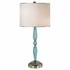 Blown Glass Table Lamp / Shallow Drum Silk Hardback Shade with Nickel Trim / Polished Nickel Metal Base and Accents