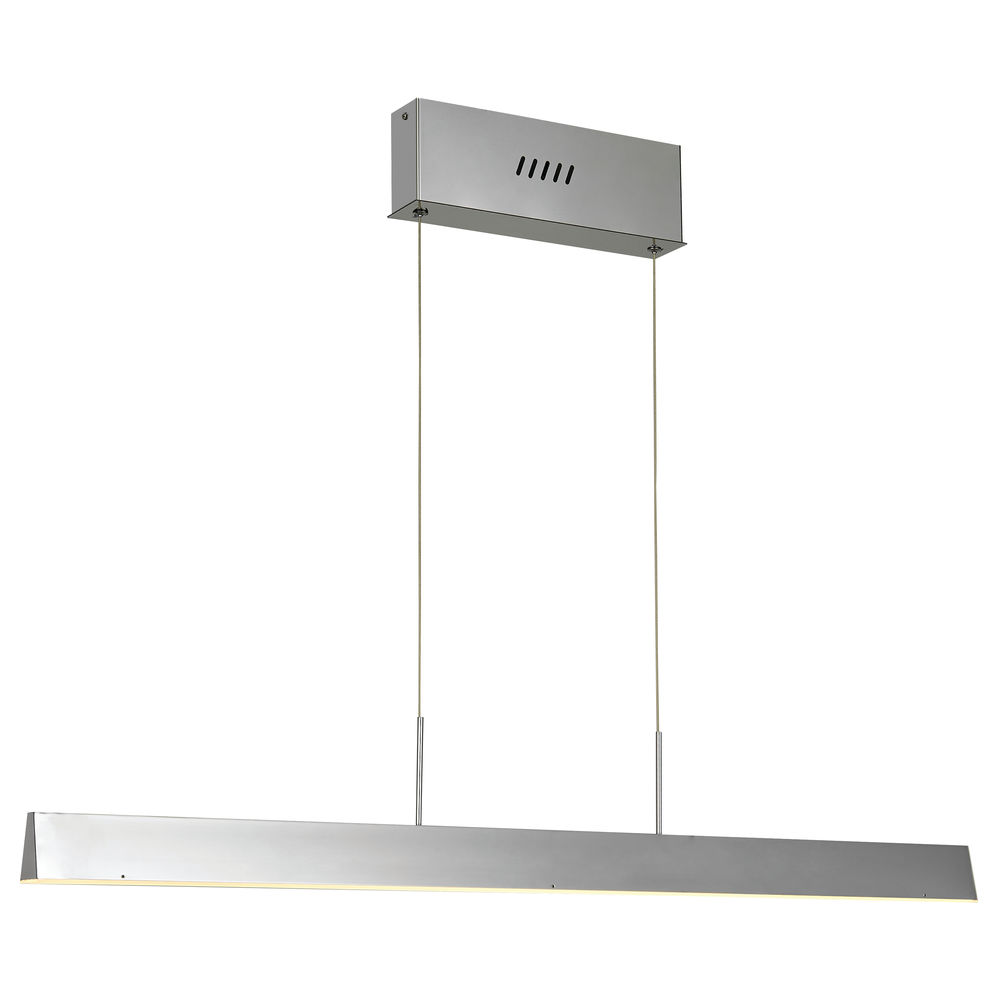Lennox collection in Chrome has a metal hood with light diffusion at the bottom. 15W LED, 3000K integrated bulbs, 80+ CRI, 1350 Lumens. Adjustable heights upon installation, dimmable with Triac dimmers. 5 year warranty.
