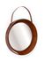 The round cognac color leather wrapped mirror has a fun leather hanger. This mirror design was inspired for a masculine setting, like a lakeside retreat, rustic modern room or a modern warehouse loft apartment. See 301801 for a smaller size.