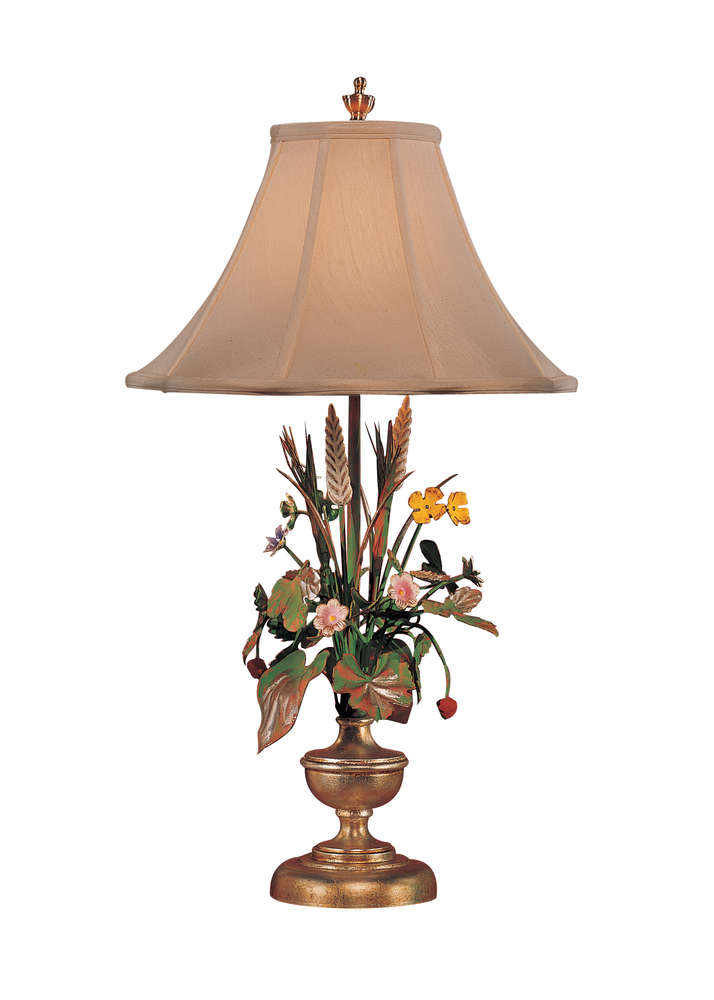 : Dimensions: Height 25" (63 Cm.) Bulb Type: (1) 60 Watt Maximum Standard Medium Base Switch Type: One Way Shade Number: 187050 Shade Size Top: 5 inches Shade Size Bottom: 14 inches Shade Size Side: 9 inches Shade Color: Wcbone Shade Fabric: Silk