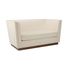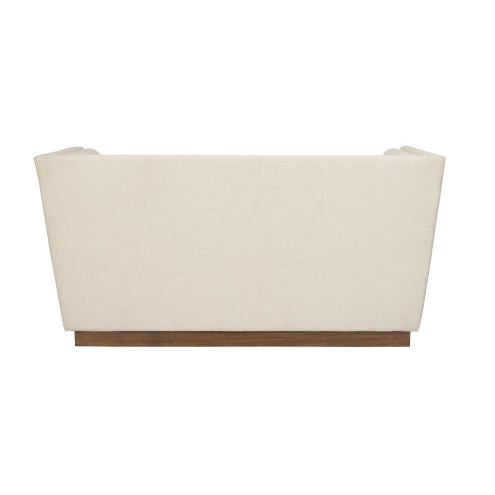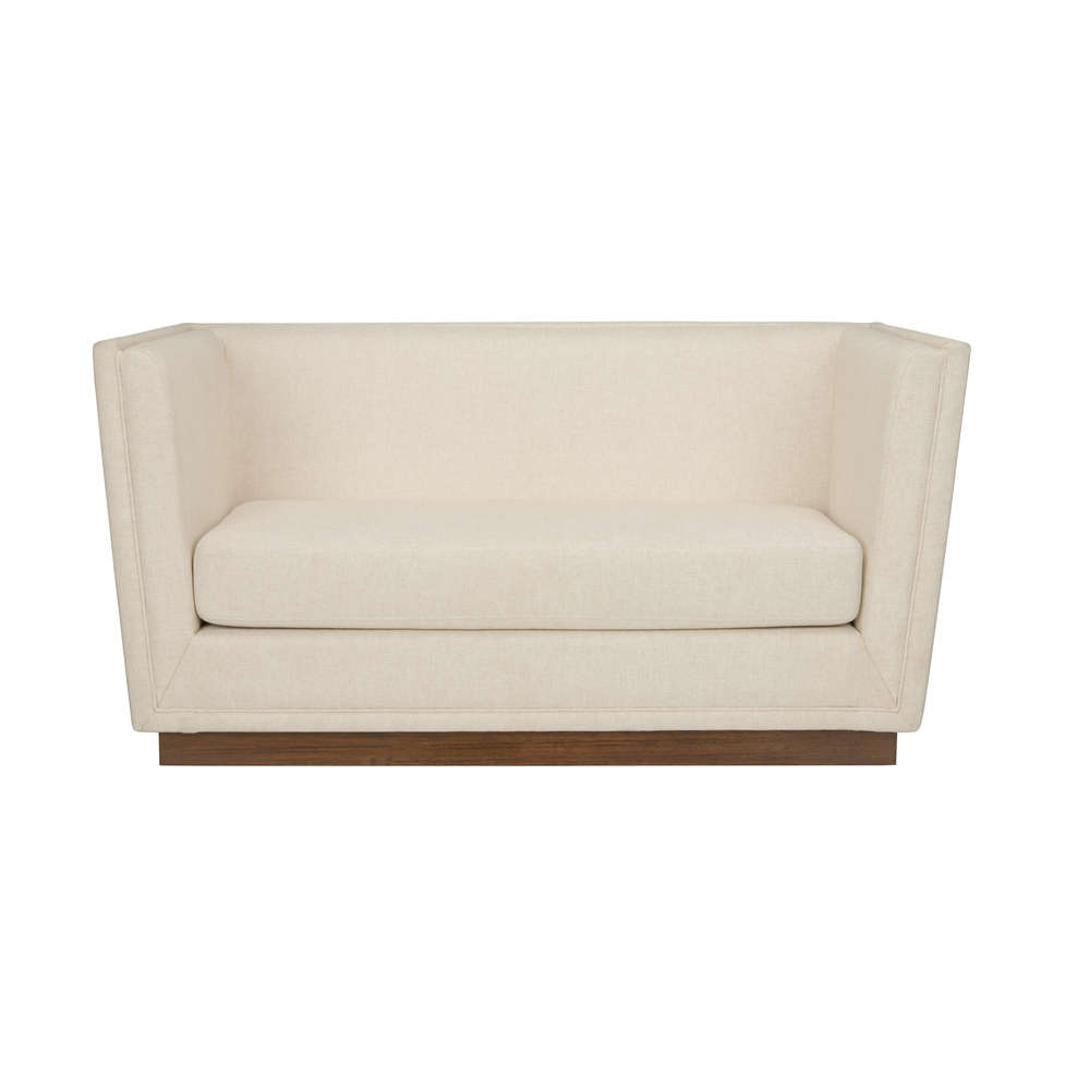 The Gehry Swivel Chair features a wood base and 302-grade stainless steel frame with sinuous springs. The neutral fabric is a medium-weight viscose/poly/linen blend that will complement a variety of colorways.