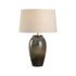 The Megumi Table Lamp, part of the Shiga collection, is hand turned and finished in one of six ancient kilns in Japan. The elements from the soil of Shiga create this earthy toned ombre finish on a classic jar shape lamp completed with cloth wiring and topped with a refined rolled-edge linen shade. Made in Japan.