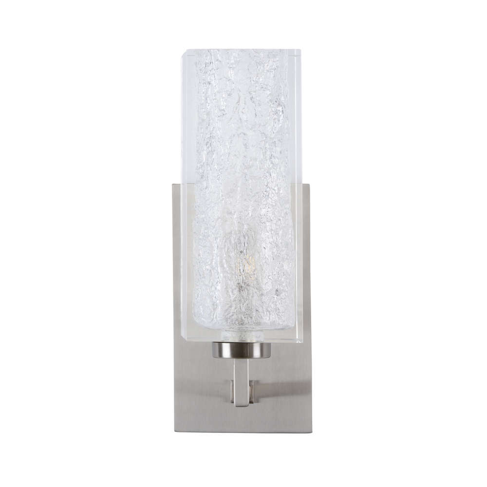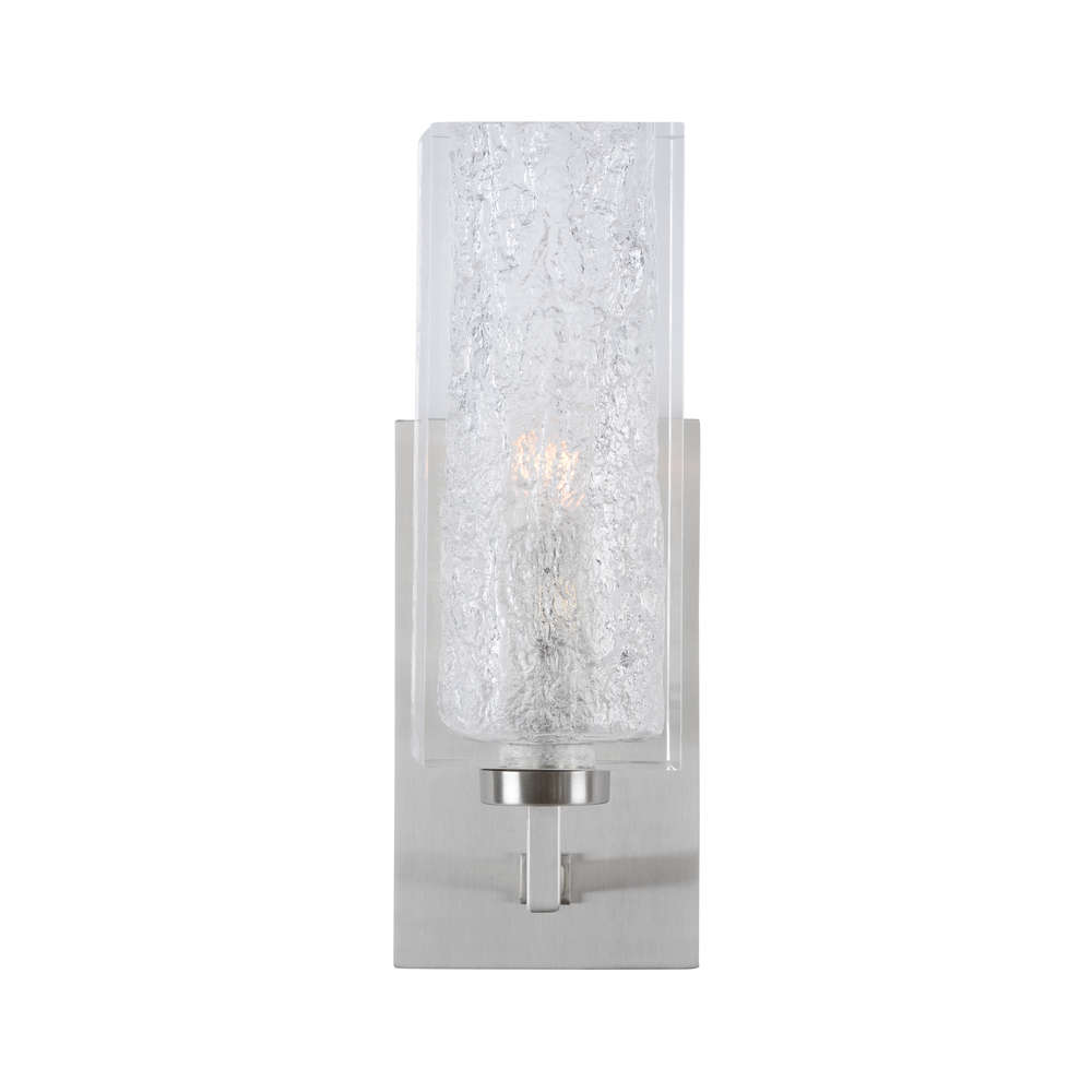 Lucallan sconce brings ambient light to your design with its one candle socket set in an ice textured block of acrylic. With its satin nickel finish, this modern wall sconce will be at home in hallways, bathrooms or paired to flank a mirror or piece of art.