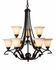 : Iron and Glass Chandelier Dimensions: H 36" (91 Cm) D 32" (81 Cm) Bulb Type: (9) 25 Watt Maximum Candelabra Base Shade Number: C/W